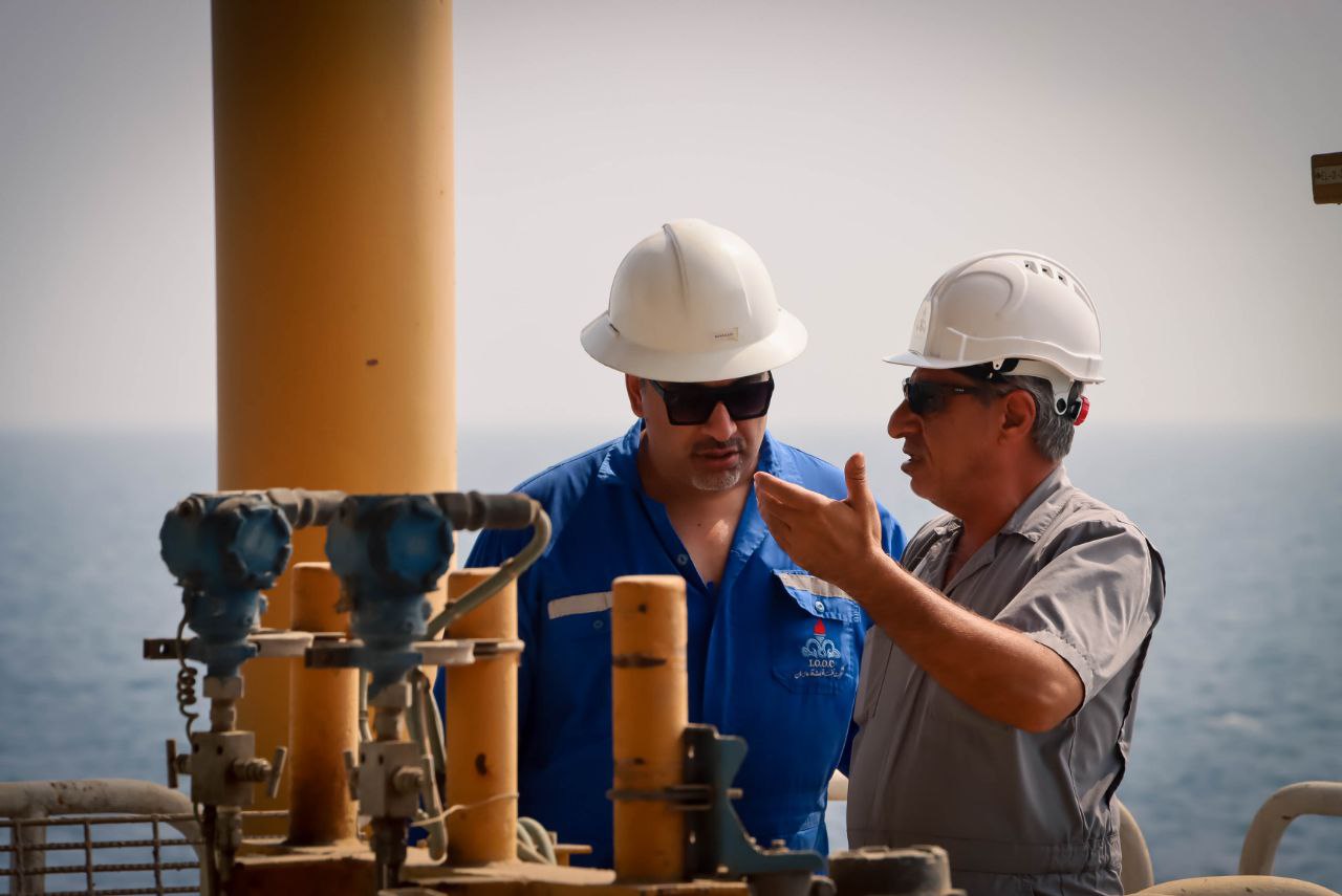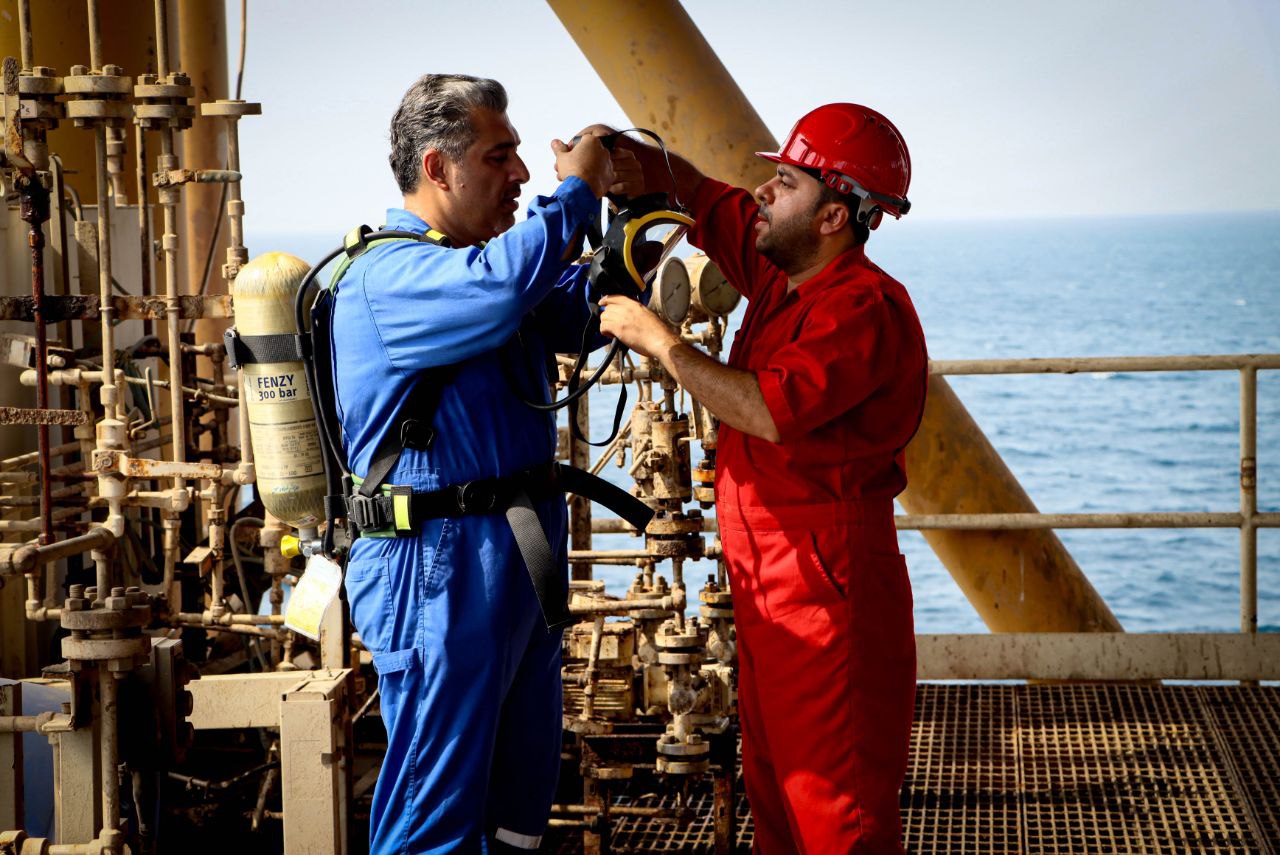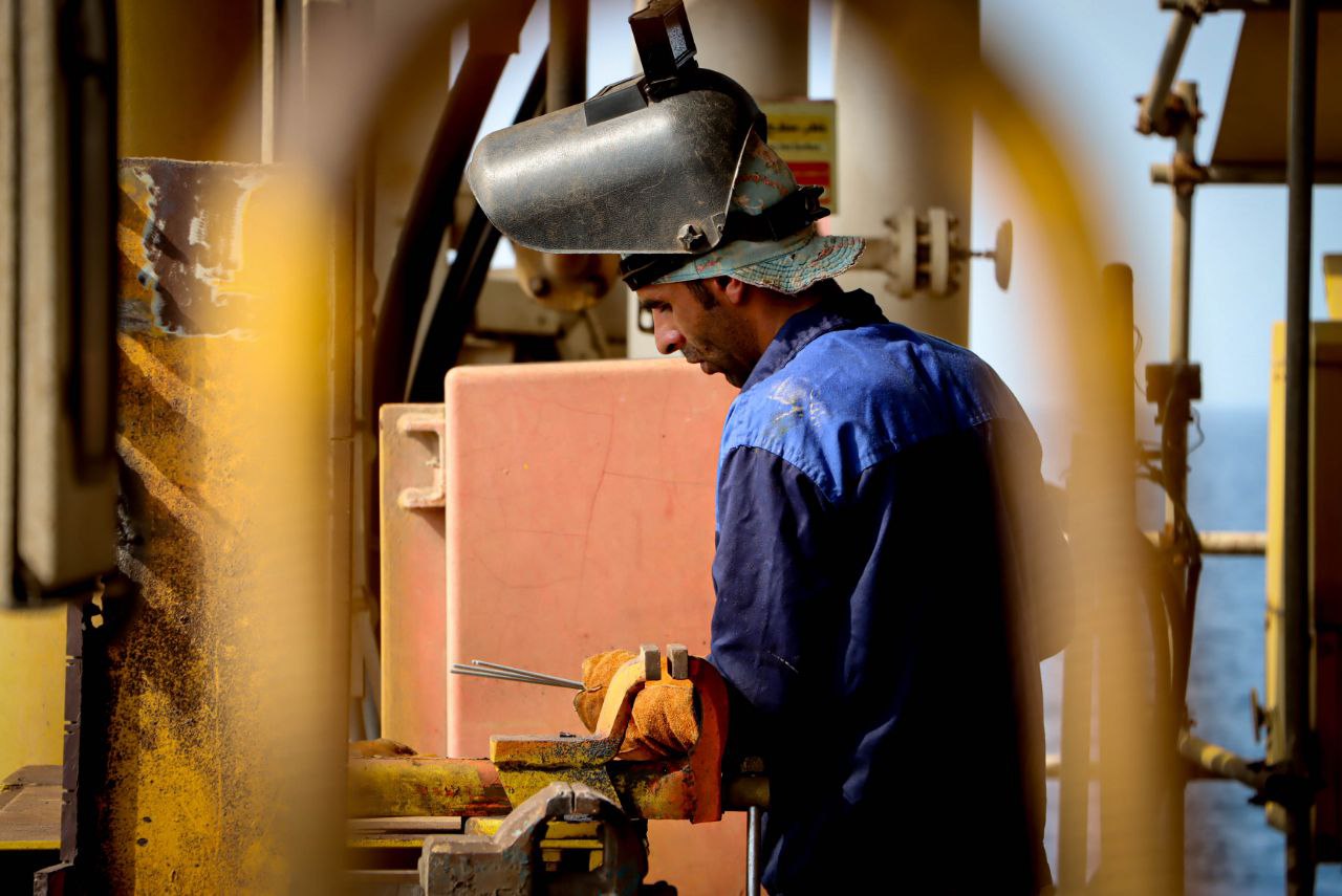 تلاش بی‌وقفه کارکنان شرکت نفت فلات قاره ایران در سکوی نفتی ایلام