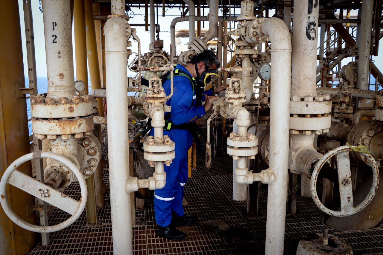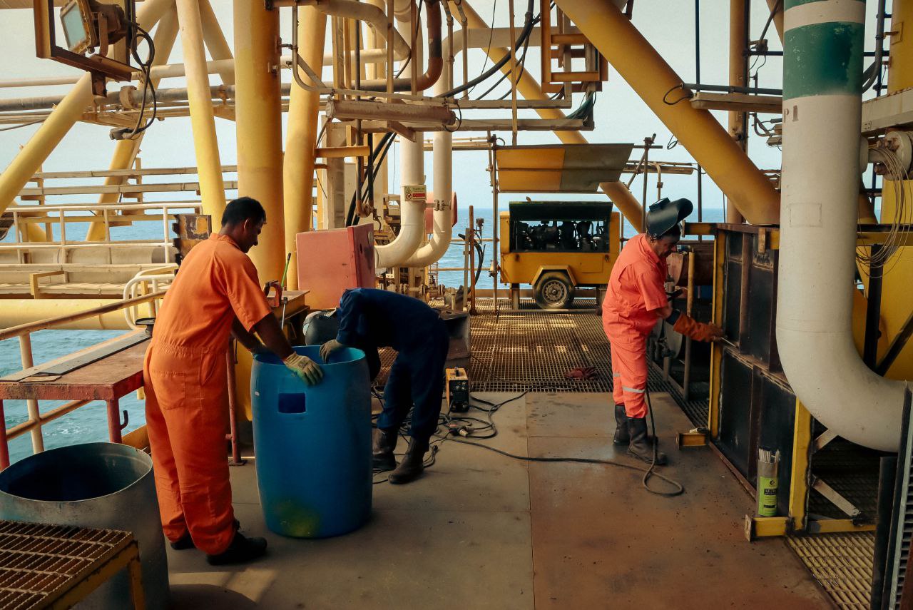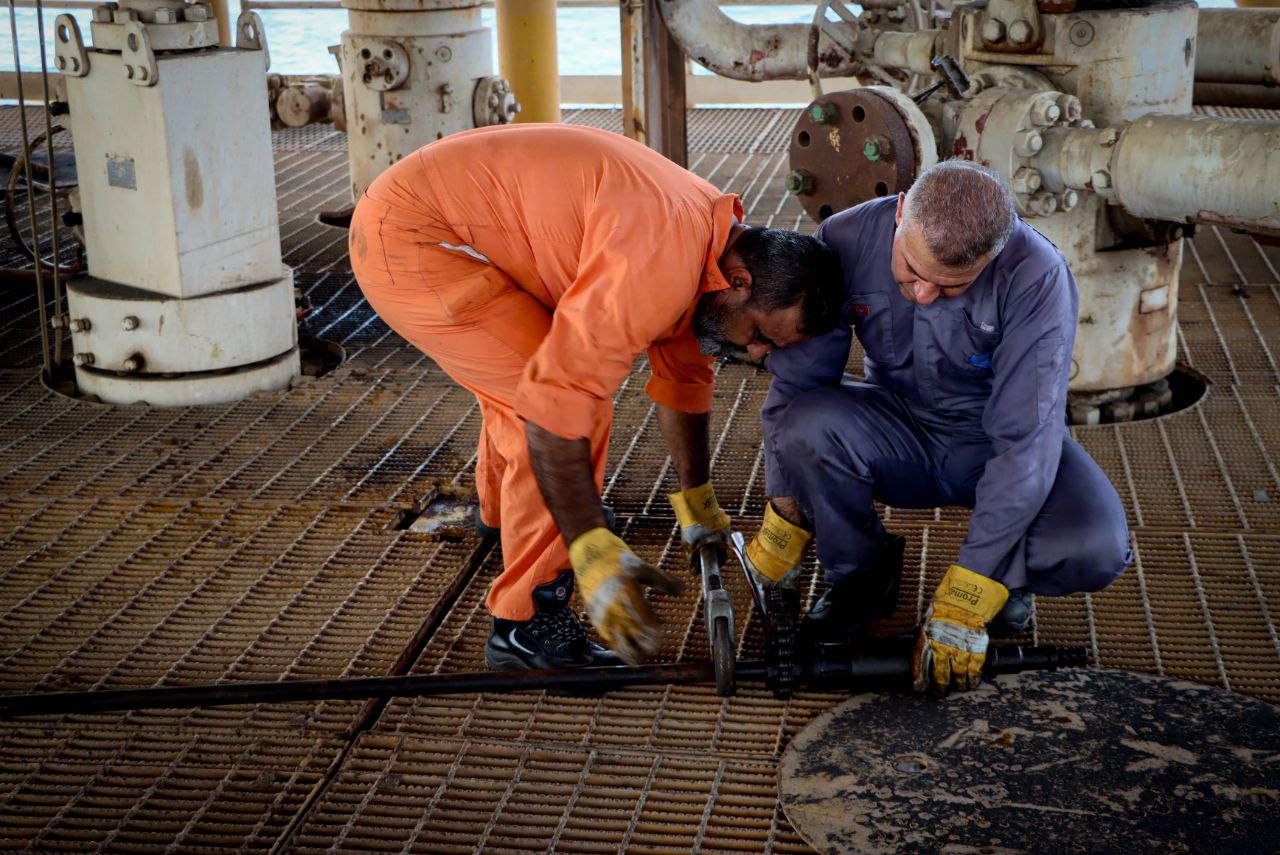 تلاش بی‌وقفه کارکنان شرکت نفت فلات قاره ایران در سکوی نفتی ایلام
