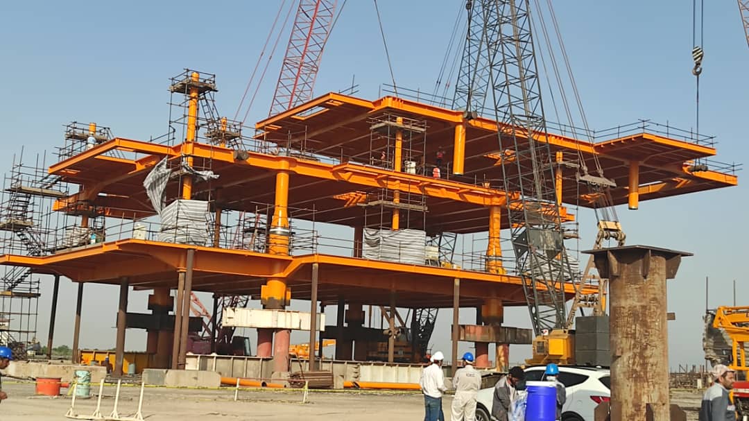 پیش از این صبح روز چهارشنبه 6 مردادماه، عرشه QA با وزن 160 تن بر روی طبقات Cellar و Main قرار گرفته بود.