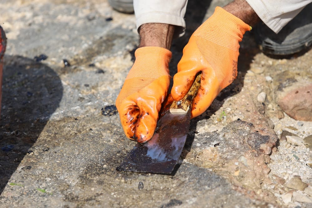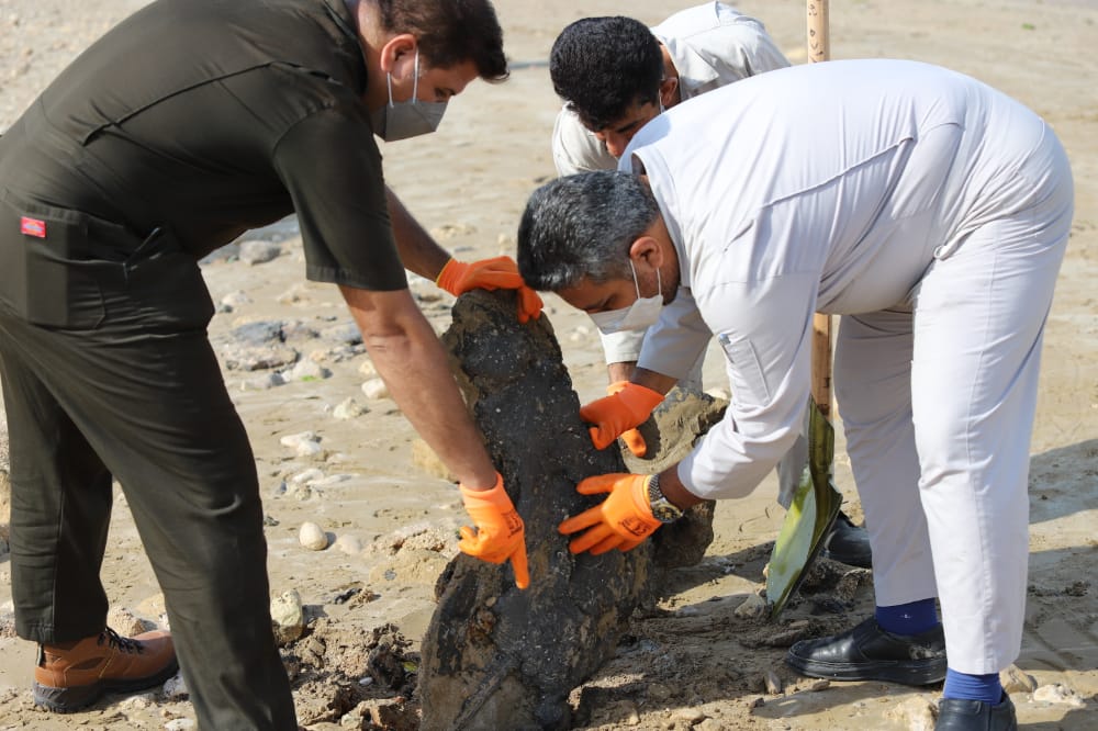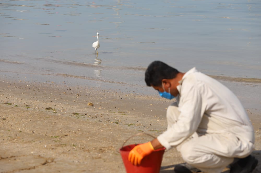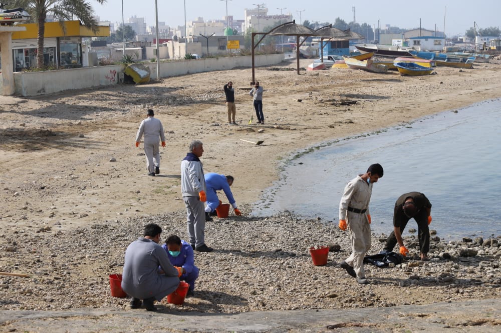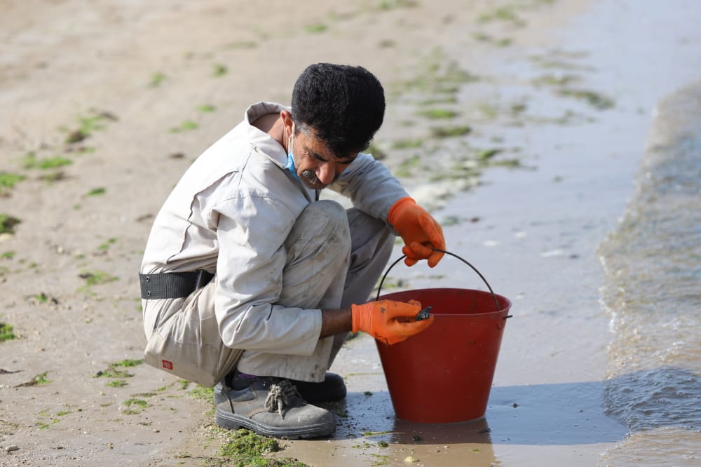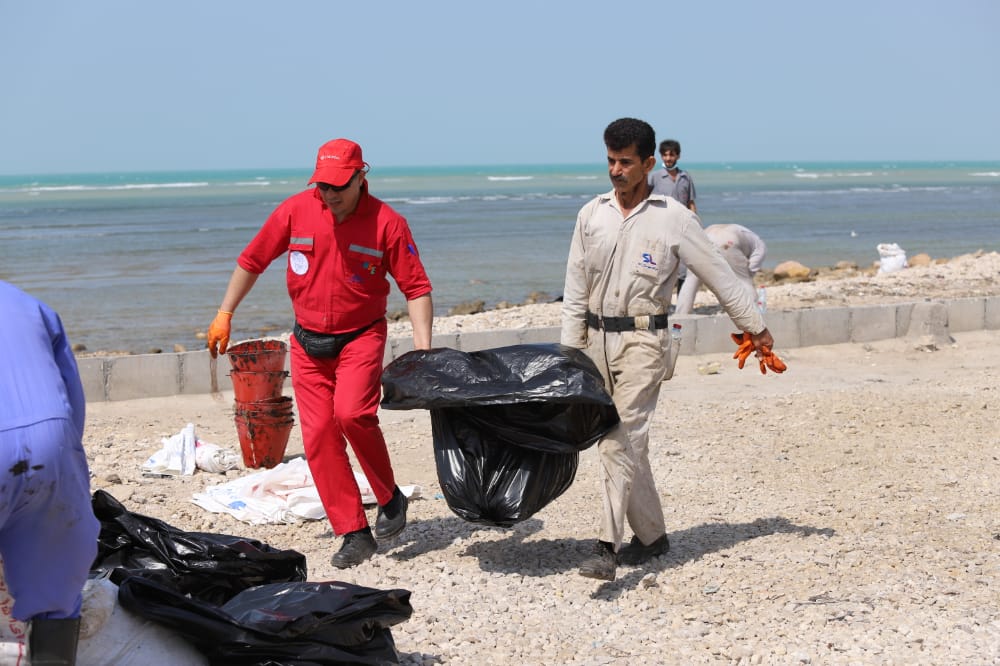 جمعآوری و پاکسازی آلودگی نفتی ساحل بوشهر توسط کارکنان شرکت نفت فلات قاره ایران