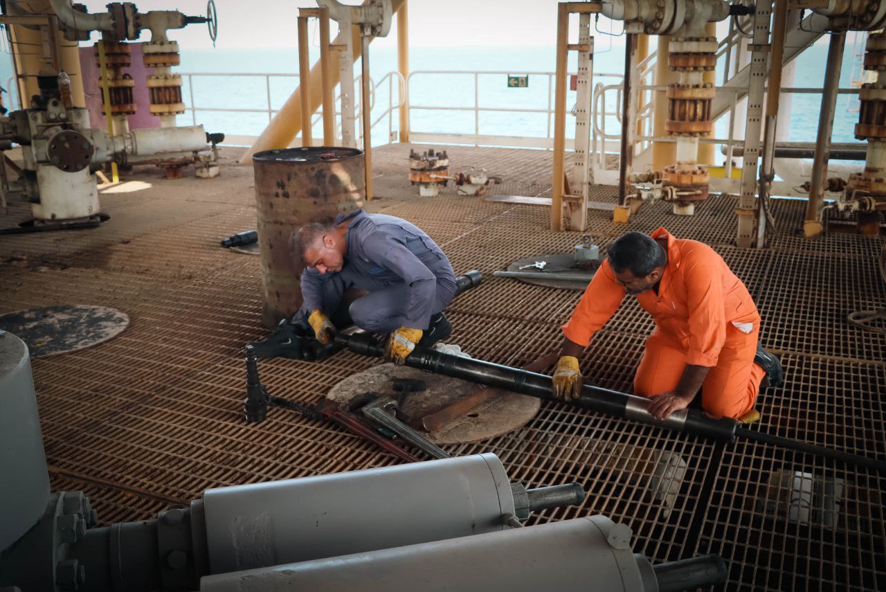 تلاش بی‌وقفه کارکنان شرکت نفت فلات قاره ایران در سکوی نفتی ایلام